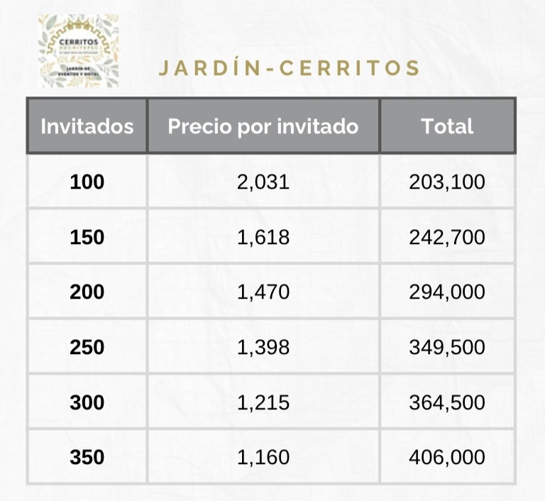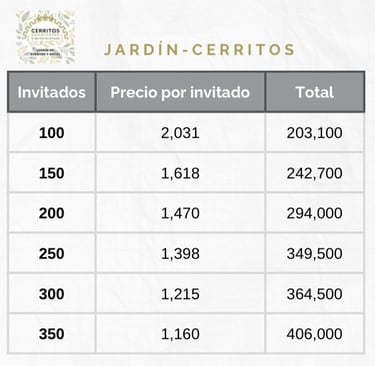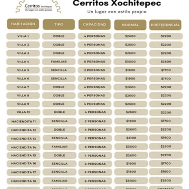 Precios hospedaje Jardín Cerritos