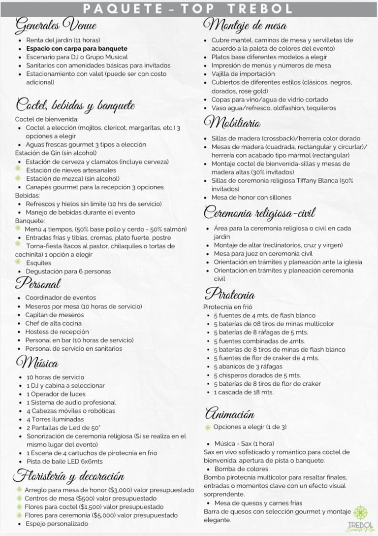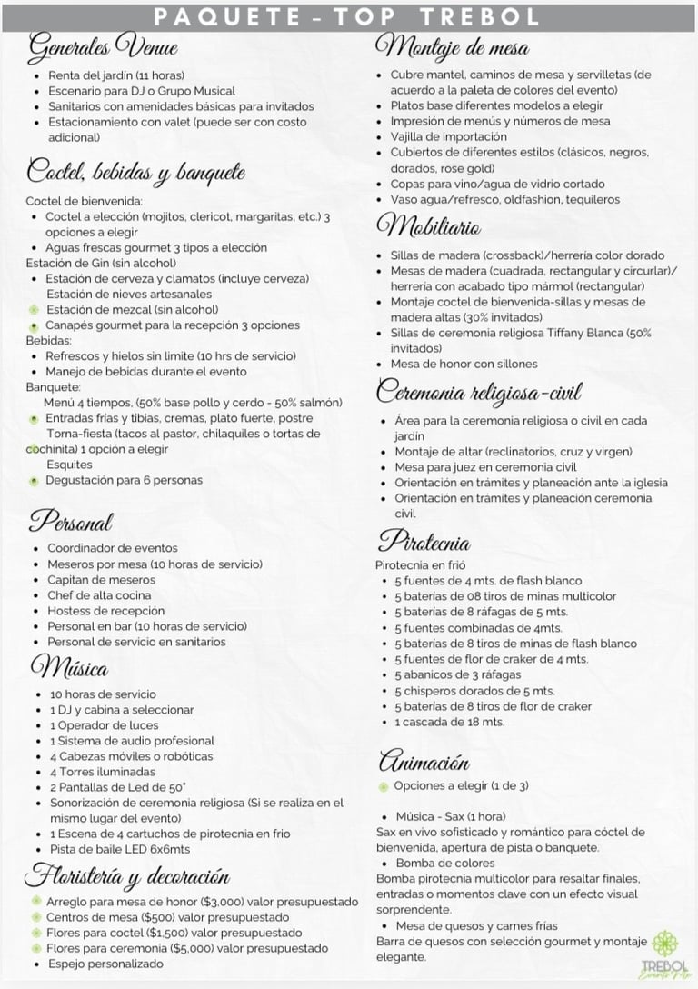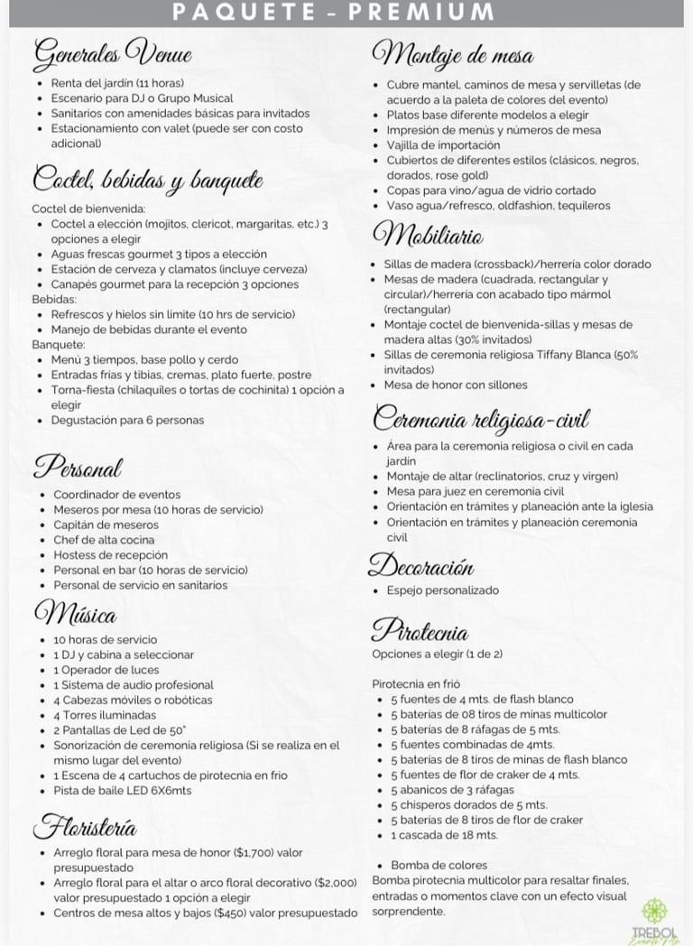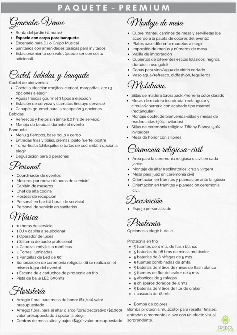 Paquete Trebol Premium (al aire libre)